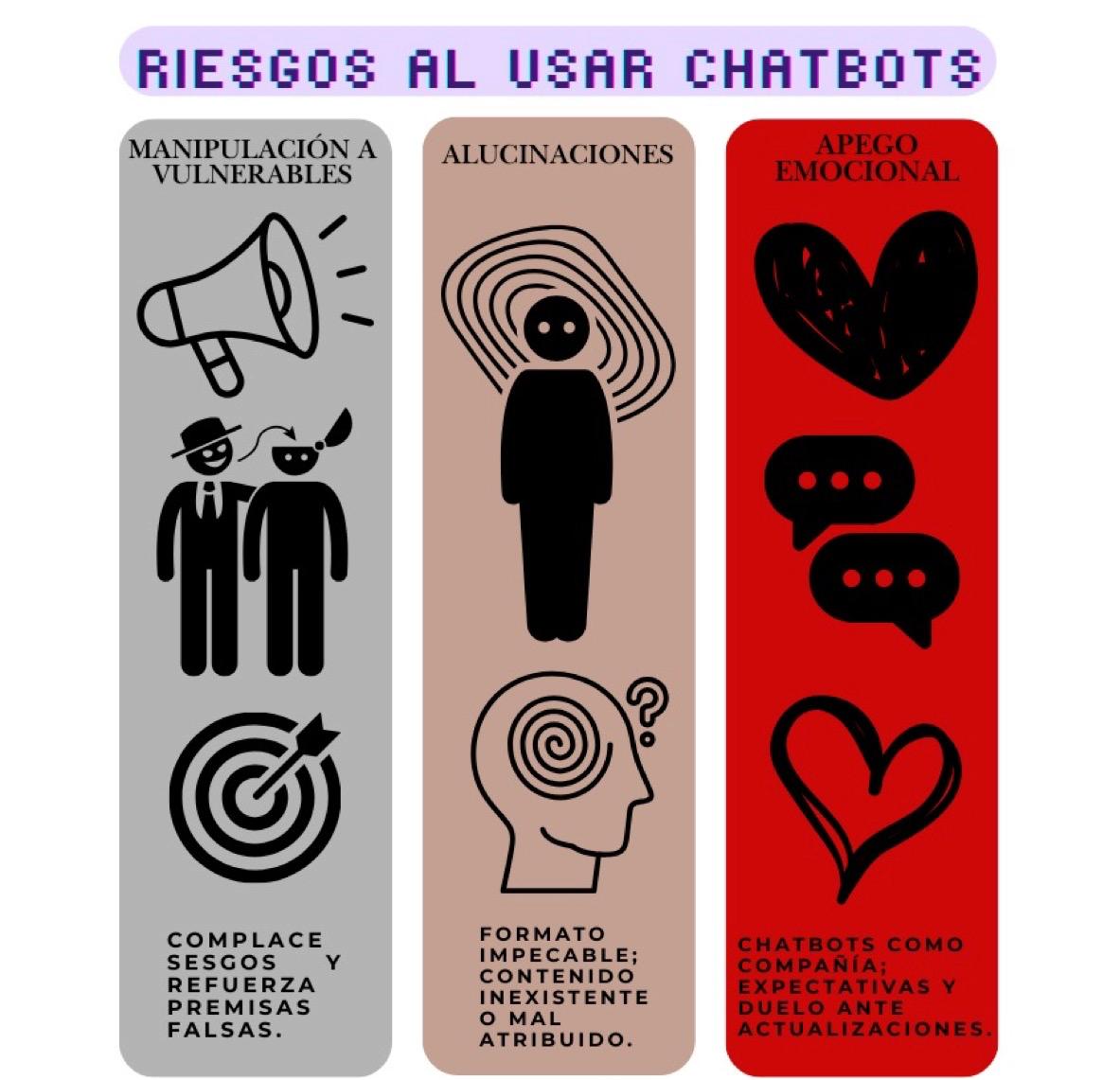 Figura 3. Riesgos asociados al uso no constructivo de modelos de lenguaje. El usuario puede inadvertidamente ser manipulado, engañado por información errónea, o generar un apego emocional perjudicial.