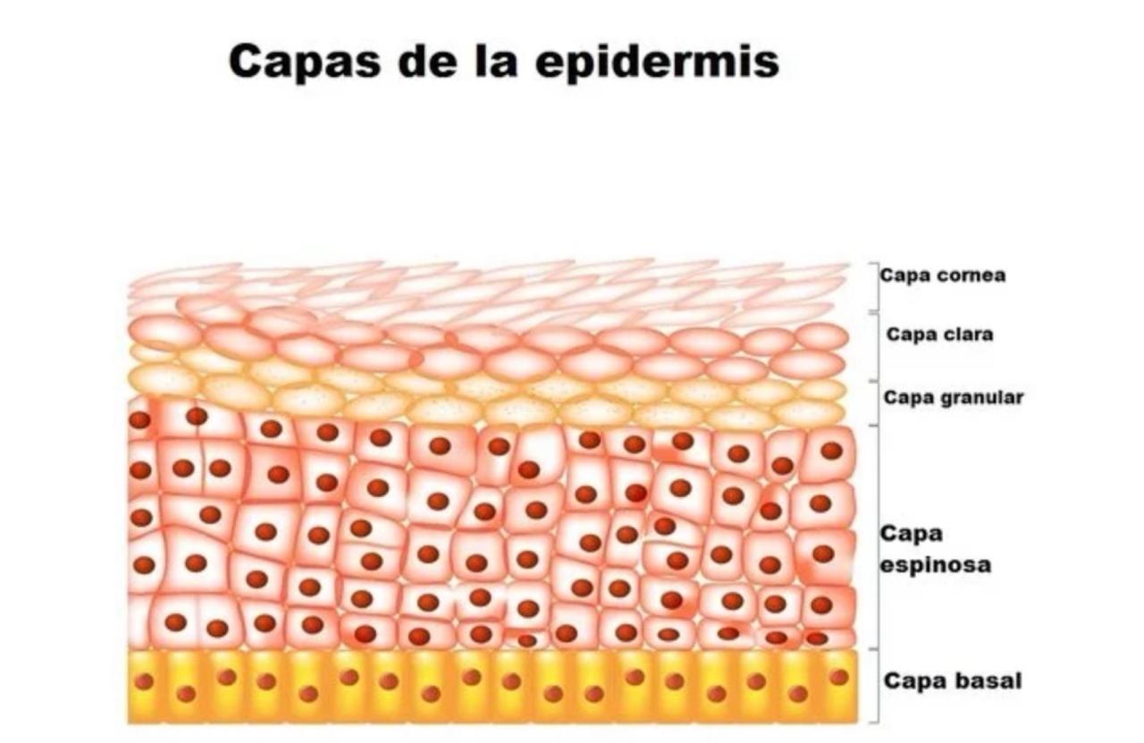 Figura 4. Capas en la epidermis humana. Figura tomada de https://anatomiatopografica.com/histologia/histologia-de-la-piel/