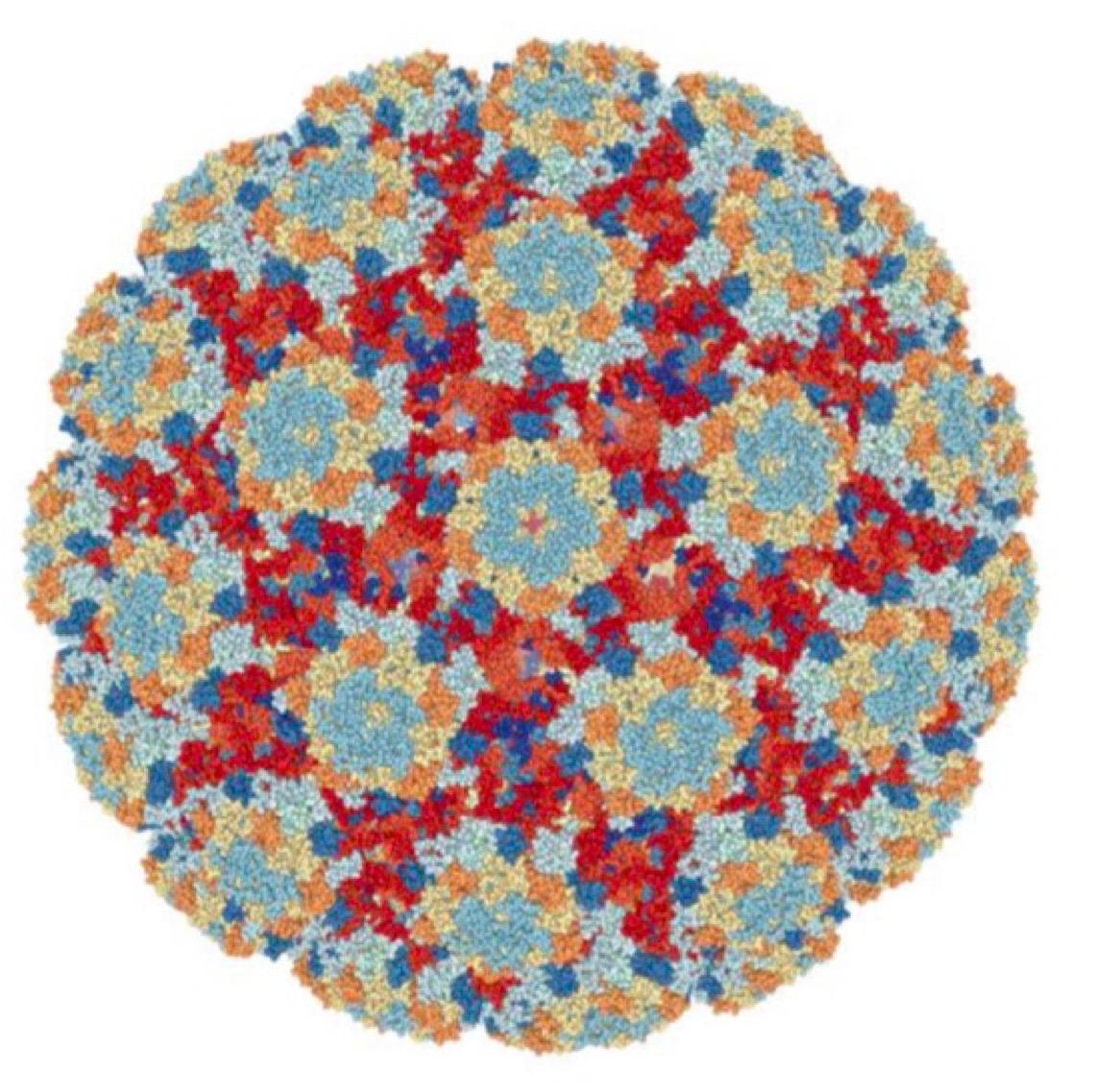 Figura 5. Partículas similares a virus (VLP) conteniendo 72 pentámeros de la proteína L1 del papilomavirus humano. Figura tomada de Frazer (ver lecturas adicionales).